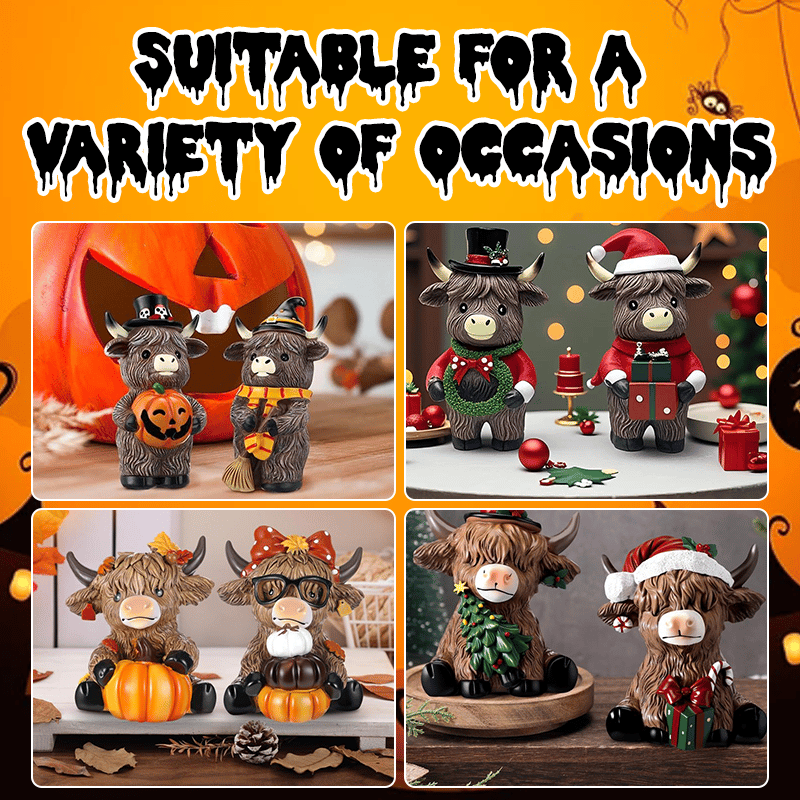 a thoughtful and unique gift for someone who loves highland cows is definitely a great idea! This Halloween calf resin handmade figurine is ideal for birthdays, holidays, or special occasions; It's the ideal Halloween Highland cow decor gift that will delight anyone who appreciates the beauty of these gentle creatures